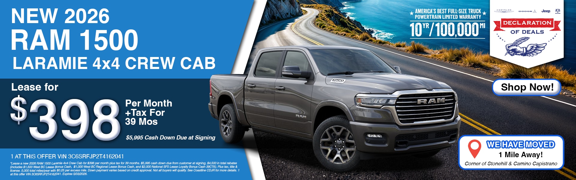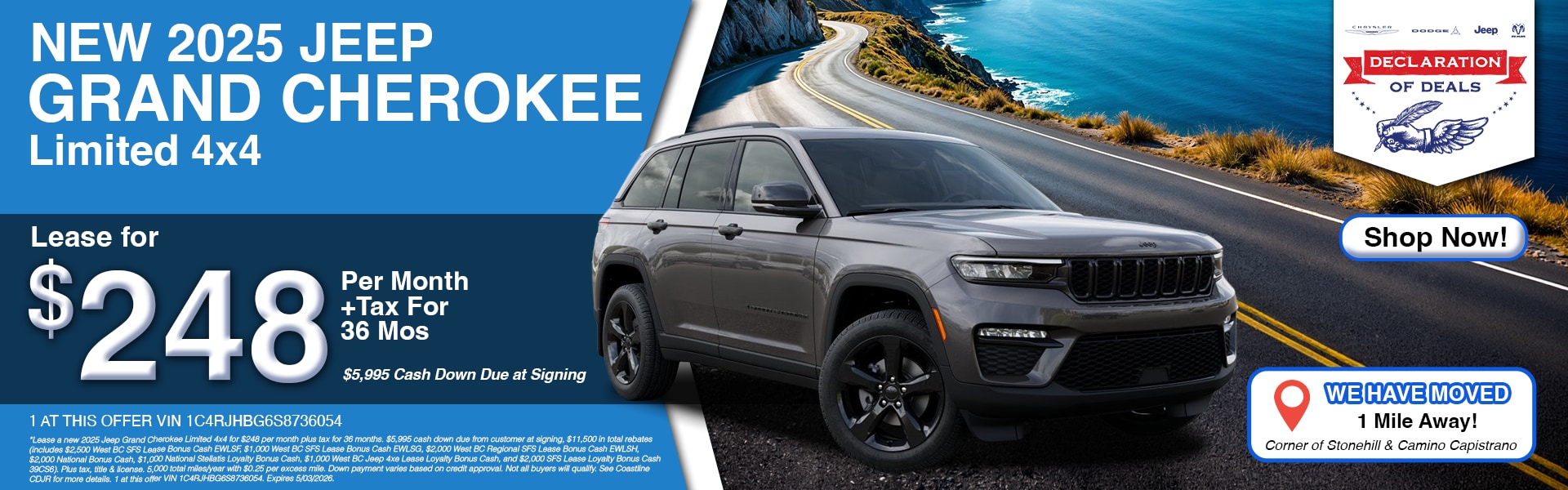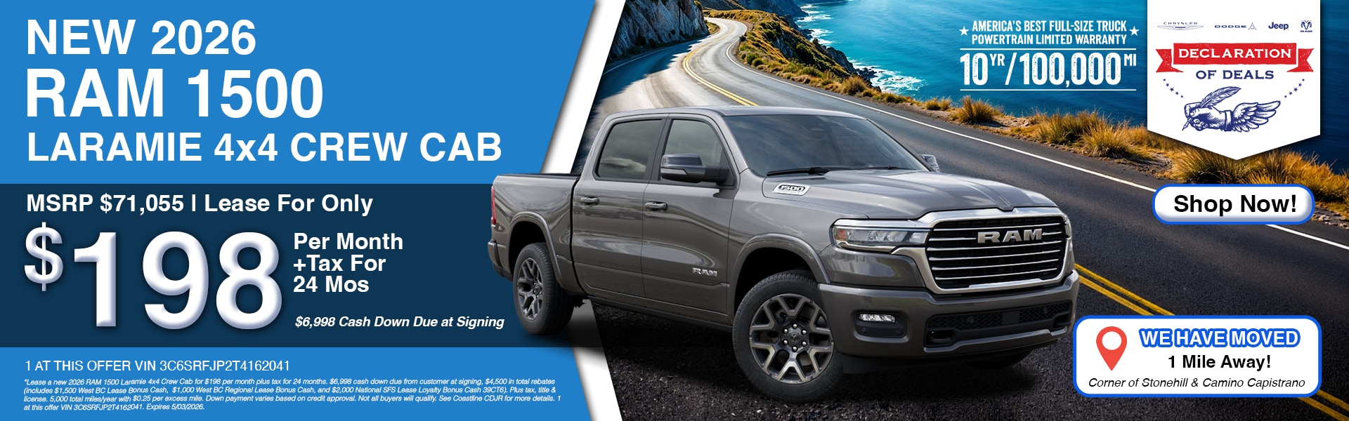 When you're ready to start your search for a new or used vehicle, you need to visit us at our Chrysler, Jeep, Dodge, Ram dealership located in Laguna Beach, CA. We have a great selection of quality used cars, trucks, minivans, and SUVs to choose from. Come check out the legendary Jeep SUVs and their off-road prowess or Motor Trend's award-winning Ram trucks, built with the newest technology and luxury. Our dealership is located near Dana Point, San Clemente and San Juan Capistrano, so you know you have a trusted local Ram Jeep dealership near you. When it comes to our new Jeep SUVs, the Compass is perfect for those in the city who occasionally venture off-road, while the Grand Cherokee is for those who want extra luxury and even better off-road performance. If you've got some work to get done, the new Ram truck lineup offers plenty of power in the 2025 Ram 1500 and 2025 Ram 2500. Visit our dealership today, and we'll help you explore our new lease deals and our new Ram lease specials.